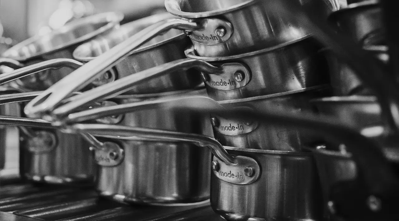 In the cladding process, layers of different metals—in Made In's case, aluminum alloy, pure aluminum, and two types of professional-grade, induction-optimized stainless steel—are stamped together into a single sheet of metal. This sheet is later formed into pots or pans to harness the best qualities of each material, resulting in cookware that performs consistently, responds instantly, and heats quickly. This complex process is what separates high-performing durable cookware from the rest of the market, and is the reason why so many chefs rely on Made In's cookware performance night in and night out.