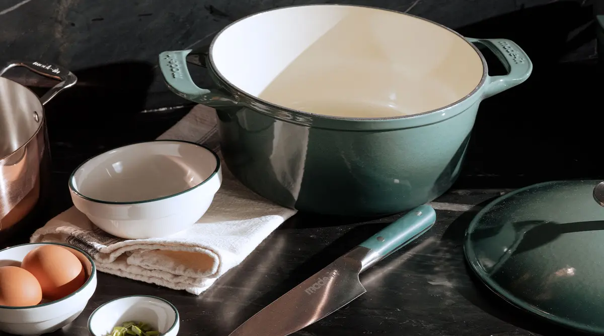 The Hudson Green Collection, debuting April 21, 2023, is the result of our collaboration with Chef Brooke Williamson, a friend and the winner of Top Chef Season 14. What began as a micro drop of Dutch Ovens in Hudson Green—a custom color chosen by Chef Williamson and named for her son—has now blossomed into a full on assortment of kitchen and dining essentials. And it doesn’t just look good—it does good, too.