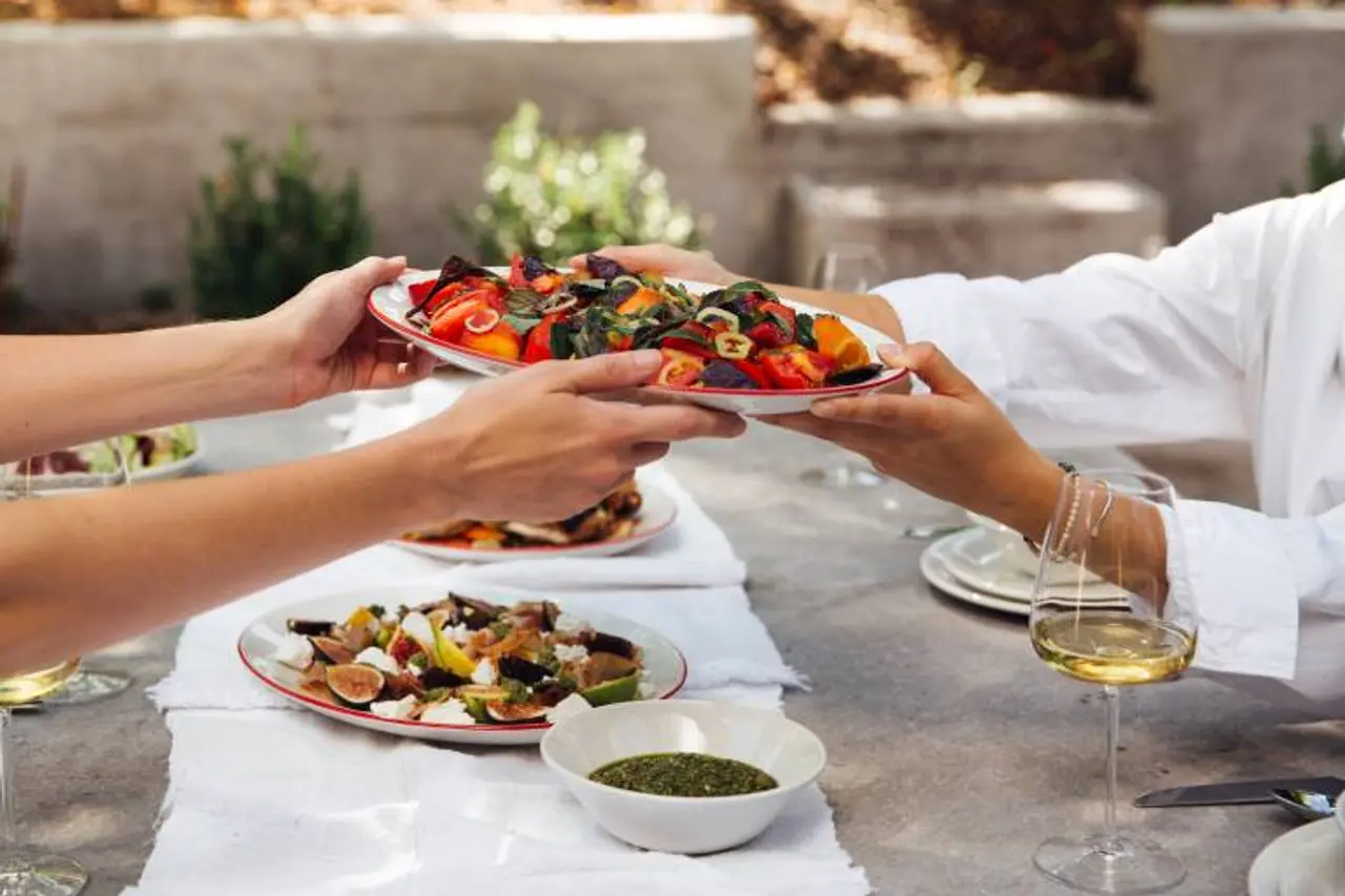 Goat cheese, pomegranate seeds, and toasted pumpkin or sunflower seeds bring a trifecta of tangy, toasty and tart flavors to this kale salad, courtesy of Creative Culinary Director of the Made In Studio, Rhoda Boone. We could easily (and happily) enjoy it as a meal in itself, but it also provides a welcome verdant contrast to other, heavier and more cheese-forward apps.