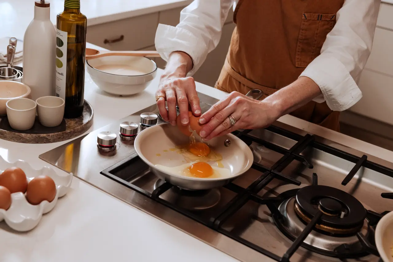 Why is Made In’s CeramiClad™ Frying Pan the best pan for eggs? Its two layers of proprietary non stick CeramiClad™ coating provides easy release for all your favorite egg dishes, every single time. The coating is also longer lasting than most competitors, which means your eggs will slide effortlessly onto plates for years to come. Another advantage is that stainless steel heats quickly, then retains that same heat level. Eggs like to remain at the same temperature throughout the cooking process, with the protein in the whites coagulating unevenly at the slightest shift. Fluctuating heat can mean the difference between tender and rubbery. That’s why it’s helpful to start with room temperature eggs—try submerging them in lukewarm water for 10 minutes if they’re right out of the fridge. Bet you didn’t know they were such drama queens.