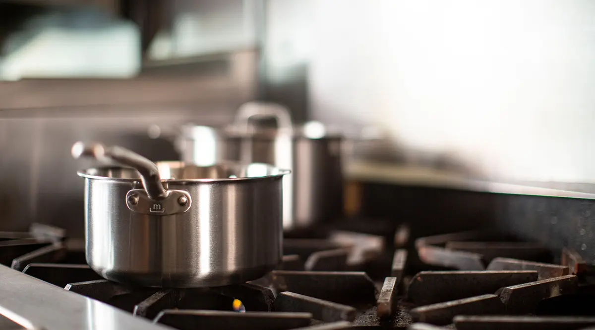 For consistent results, we recommend using a stainless clad saucepan. The cladded construction offers excellent temperature control and heat retention, making it much easier to achieve—and maintain—the gentle simmer you’ll need for proper poaching. Depth is also key—make sure the pan you’re using is deep enough to keep the white from sticking to the bottom. For poaching eggs in batches, we’d recommend using something with a bit more volume, like a saute pan or stock pot.