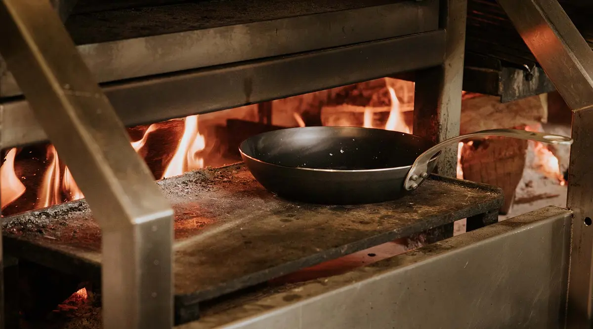Just like with unfinished cast iron, having a properly seasoned carbon steel pan is essential. Seasoning is as simple as heating a thin coating of high smoke-point cooking oil in your pan—we prefer grapeseed—to create polymerization, or hearing the oil until it forms a solid layer that fills the metal’s small pores. This doesn’t just make your pan effectively non stick, but also protects your pan from oxidation (the main culprit of rust).
