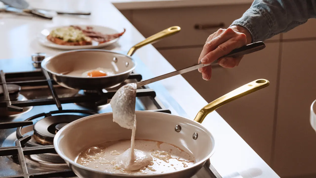A solid frying pan is already a foolproof gift for an home cook. But what if that home cook is also obsessed with aesthetics? Made In’s CeramiClad™ Frying Pan now comes with the option of an Antique Brass handle, adding a bit of understated elegance and character to one of our top-selling pieces.