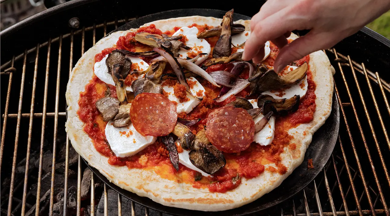 While grilling might not be the first thing that comes to mind when cooking pizza, we promise that this method turns out a crispy, chewy crust and perfectly melty cheese that rivals what you can get from your pizza oven. Using our favorite pizza dough recipe from Intero’s Chef Ian Thurwatcher, along with his marinara sauce, we learned that the trick to successful grilled pizzas is the Carbon Steel Pizza Steel, which prevents ingredients from falling into the grill as well as provides a level surface to build your ideal pie.