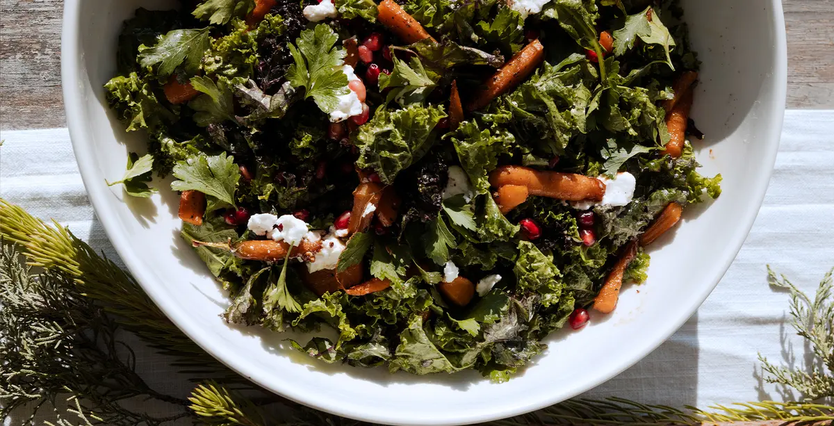 Kale Salad with Pomegranate and Maple-Glazed Carrots