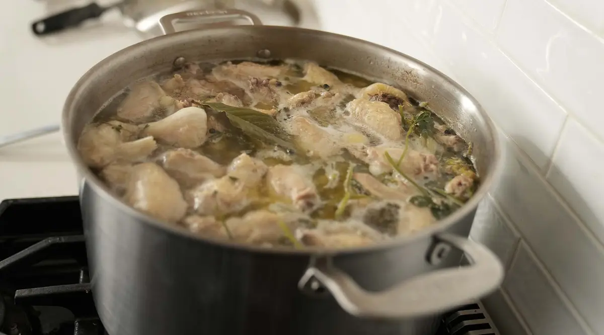Now that you know what to cook your stock in and have some ideas on how to flavor it, follow these guidelines to make it. Keep in mind what you plan to use the stock for. If it’s going in soup, you may want to keep the flavors more mild, but if it’s the basis of a pan sauce, you can lean into other flavors present in the dish.