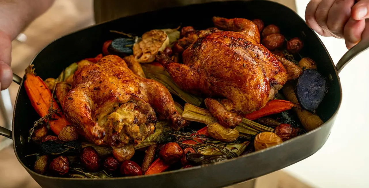 “A roasting pan is a versatile piece of equipment, perfect for fish or meat. Especially if you want to cook everything in one pan. Everything just seems to cook and brown better.”