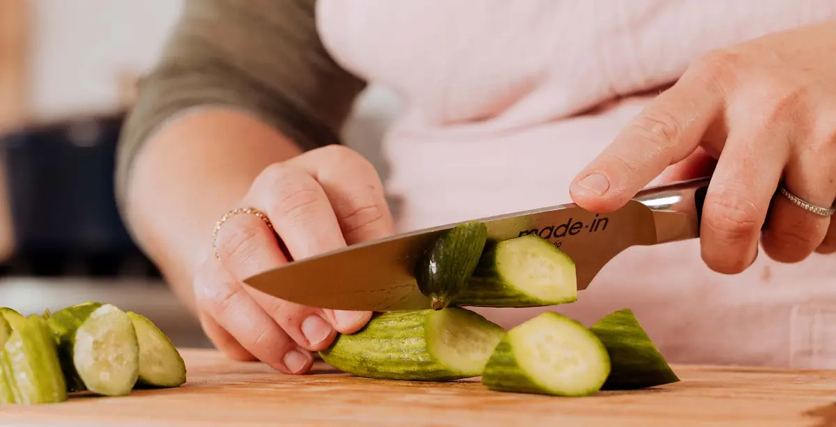 Fong recommends using the 6 Inch Chef Knife for this, as its shorter, slightly curved blade gives him more control. Here are some tips for mastering this cut for use in your next crudite platter or recreation of Woon's salad.