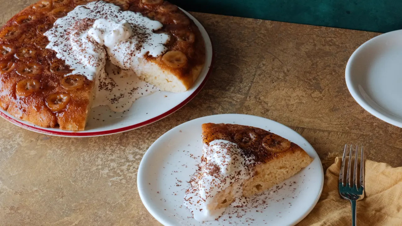 Dessert-for-breakfast truthers, this one's for you. More akin to a banana upside-down cake than the diner staple, this recipe is a long-standing family favorite of Dustin Valette, Chef-Owner of The Matheson and Valette in Healdsburg, CA, and after one bite you'll understand why.