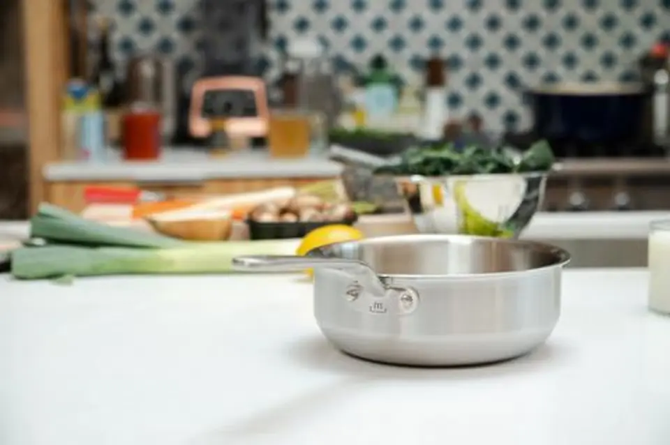 Here's Made In Co-Founder Jake Kalick's recipe for Egg Over Sunchokes and Polenta with Pickled Red Onions that utilizes a Made In Stainless Clad Saucepan, Saucier, and Frying Pan!
