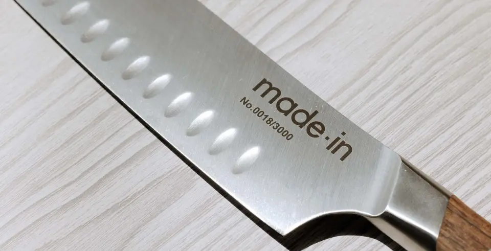 This is also where that fluted blade comes in handy. Vegetables like onions or zucchini have a high water content and can get stuck to the flat blade of a Chef Knife, or even a Nakiri, which is designed to cut vegetables. The fluted design helps the blade slide through wetter ingredients without them getting stuck.