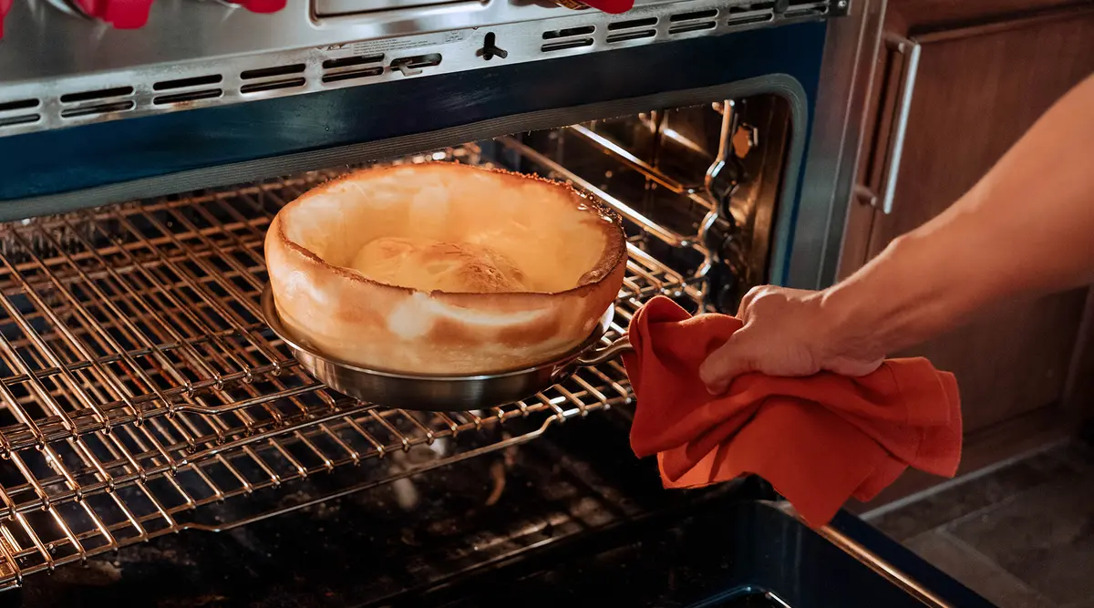 Frying pans are an excellent choice for batter-based baked goods like clafoutis, tarte tatin, and Dutch babies. If you do plan on using your pan to bake, you’ll want to choose something oven-safe, with great heat circulation and retention. For these purposes, unfinished or enameled cast iron, stainless steel, and carbon steel are all solid options, as they hold and distribute heat nicely for a relatively even bake. Just make sure that both the base and the handle of your frying pan are made from oven-safe materials.