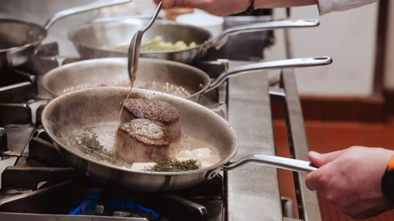 If you’ve ever wondered why your steak at home looks pale compared to one at a steakhouse, the pan is often the reason.