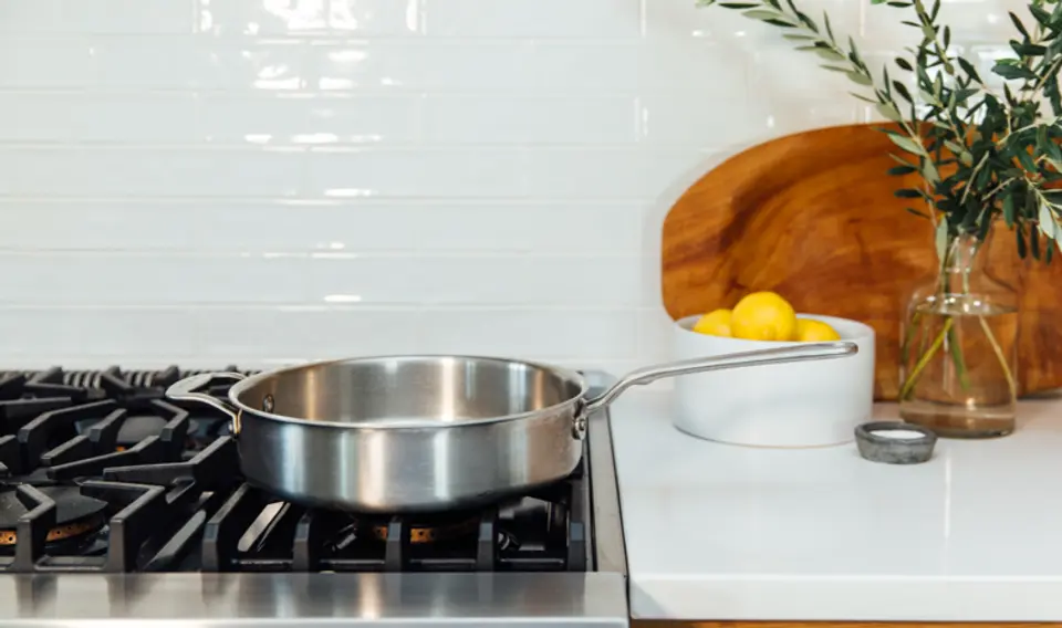Crafted in the USA and Italy, our Stainless Clad Cookware is constructed from 5 layers of metals for improved heat conduction. This prevents stuck-on messes and ensures the 5-ply construction cleans up in seconds, while rolled rims easily pour without spilling.