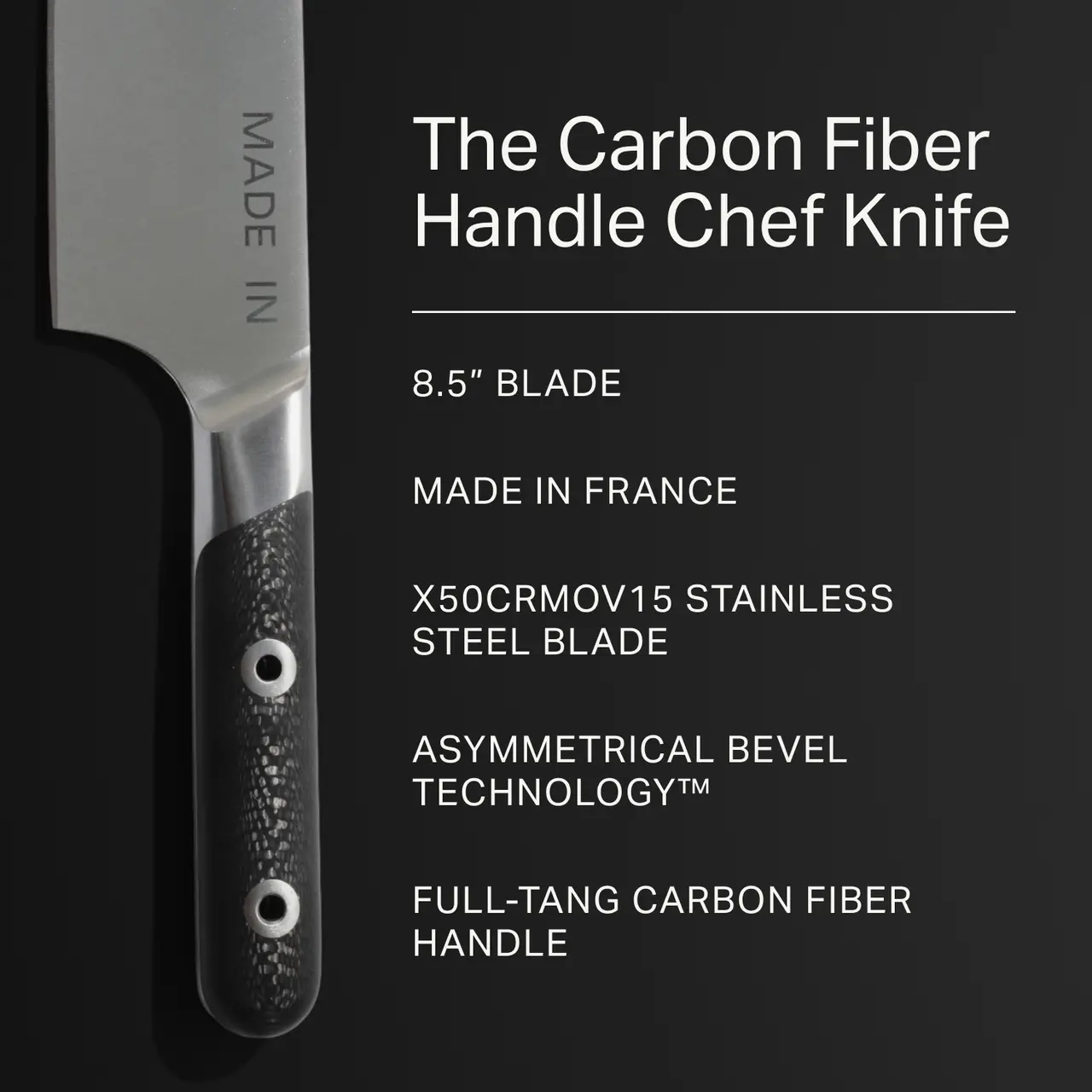 Our award-winning French-made Chef Knife, now reimagined with a Limited Edition Carbon Fiber handle for unmatched performance and modern style.