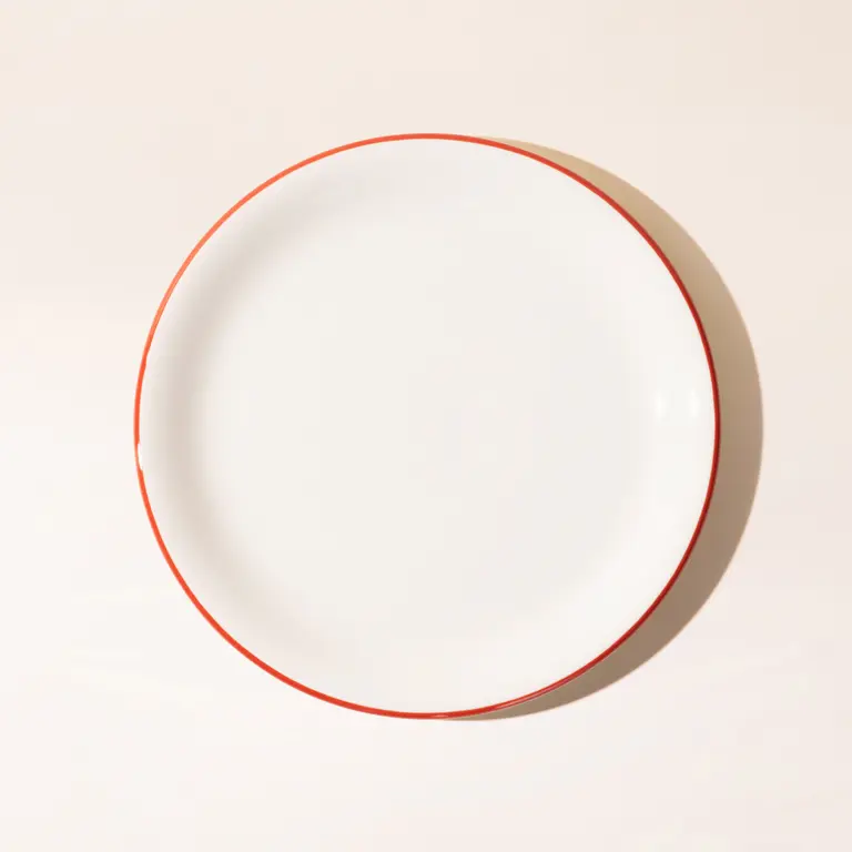 We’re the first to bring this legacy Plateware to home cooks. Most Plateware is mechanically top glazed, leaving an unfinished “foot” that causes scratching when stacked. We suspend each piece on pins and fully glaze top and bottom for 360° scratch- and chip-resistance. The glazing also makes it oven safe to 580F, so delicate sauces won’t break due to the temperature shock of a cold plate.