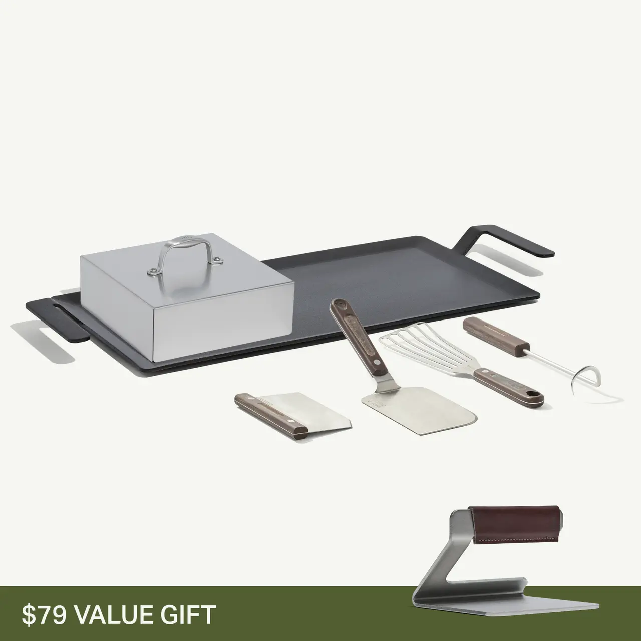 Receive a free Stainless Steel Grill Press with your purchase of the Carbon Steel Griddle Set. While supplies last.