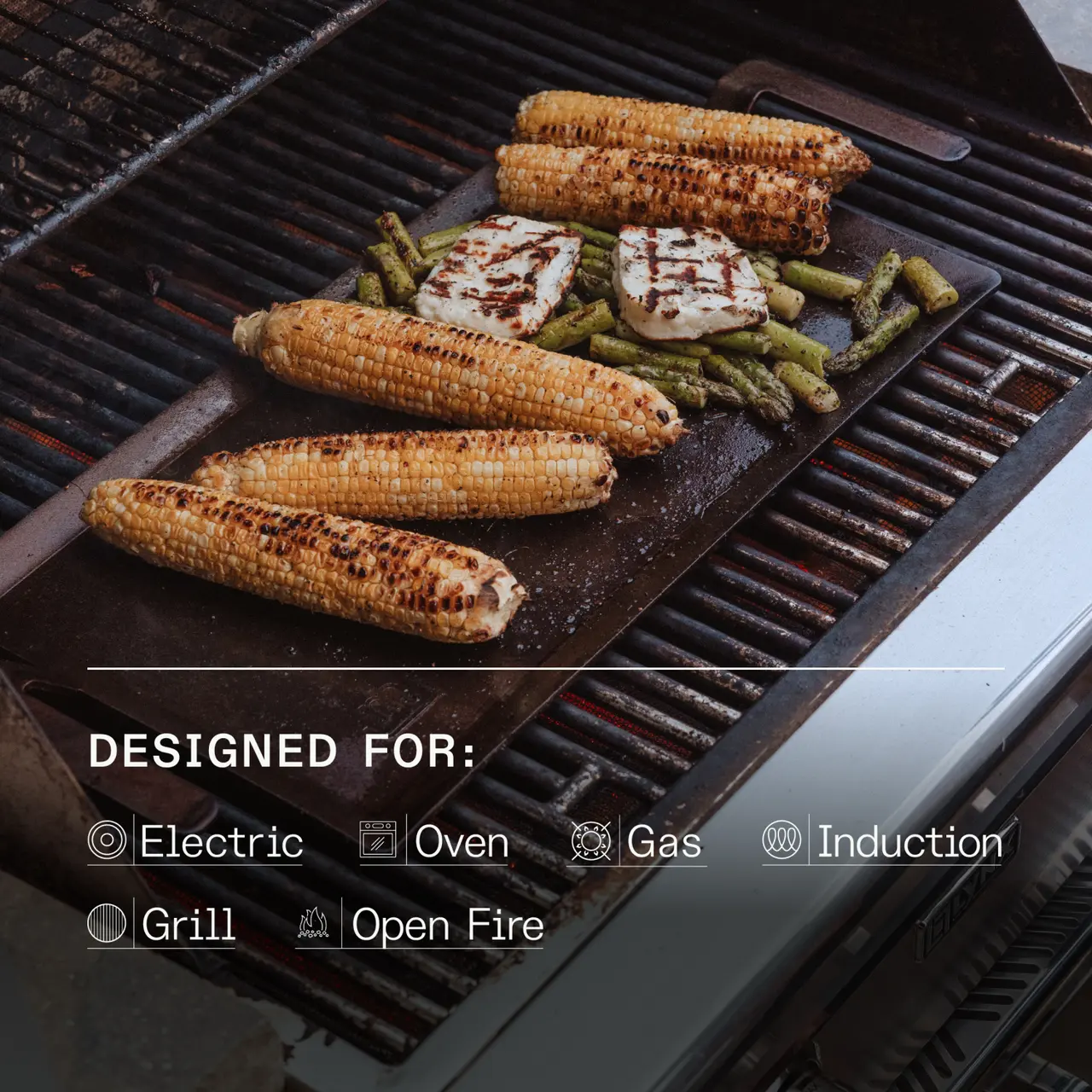 Made from professional grade 4mm Carbon Steel, this performance-engineered griddle is designed to seamlessly transition from stovetop to grill.
