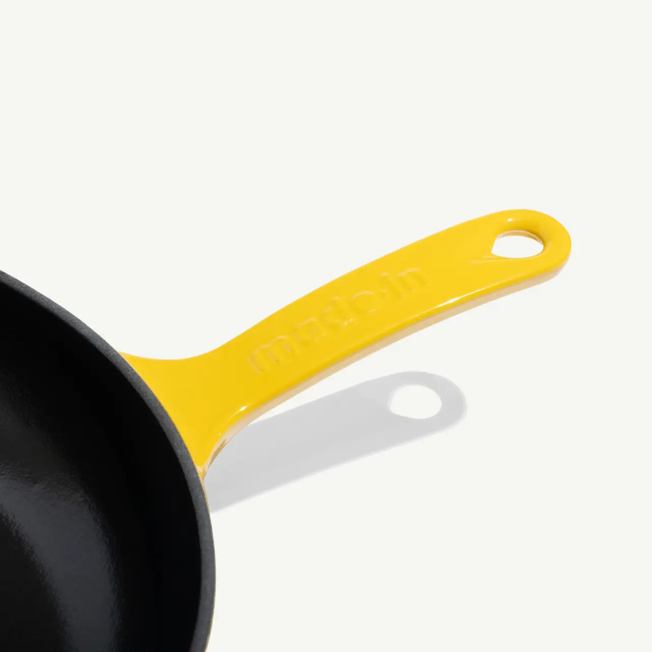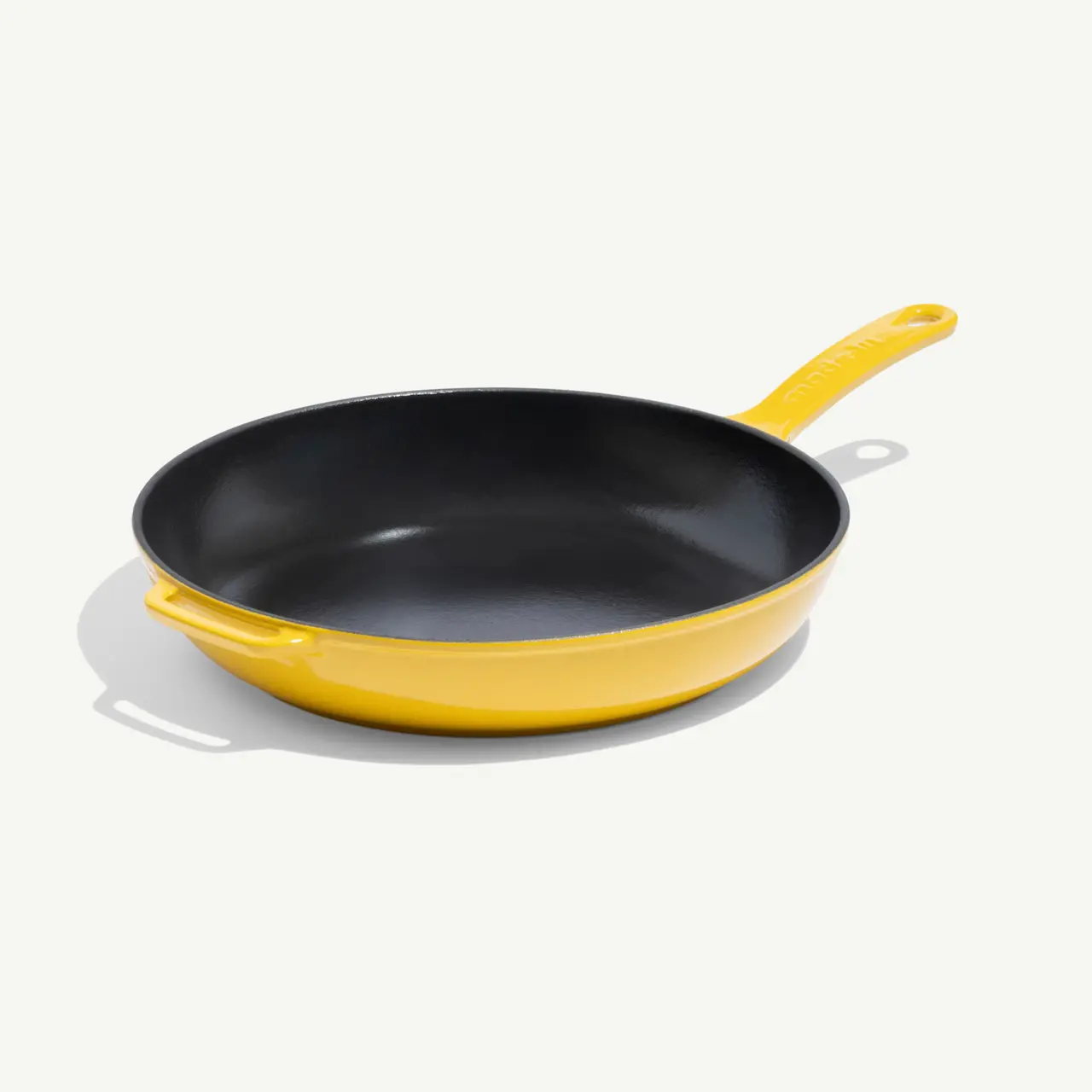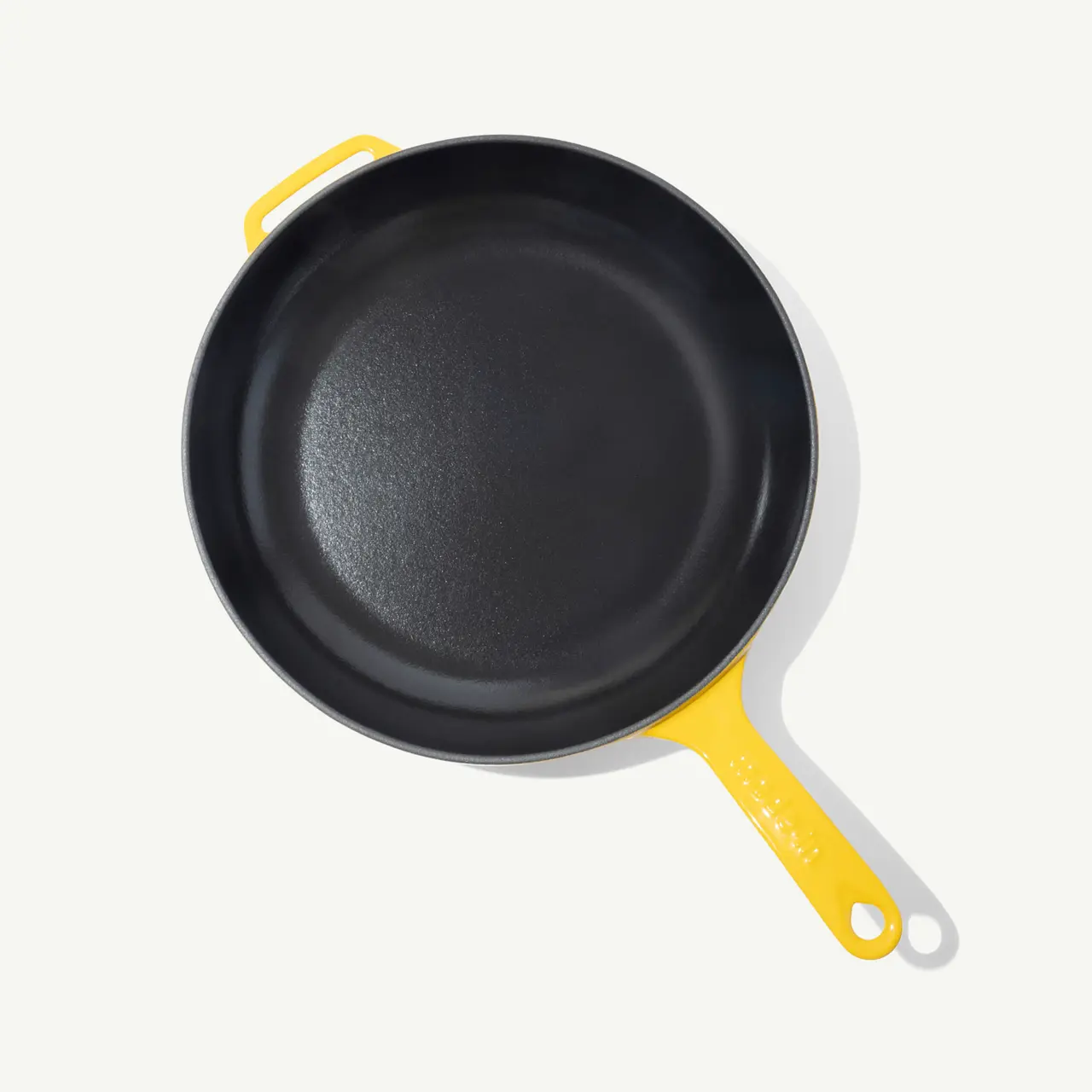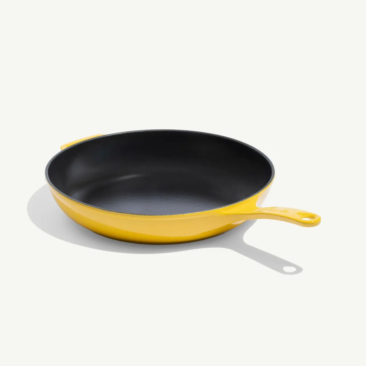 The French craftsmanship and unmatched heating properties of the Dutch Oven, now available as a Skillet.