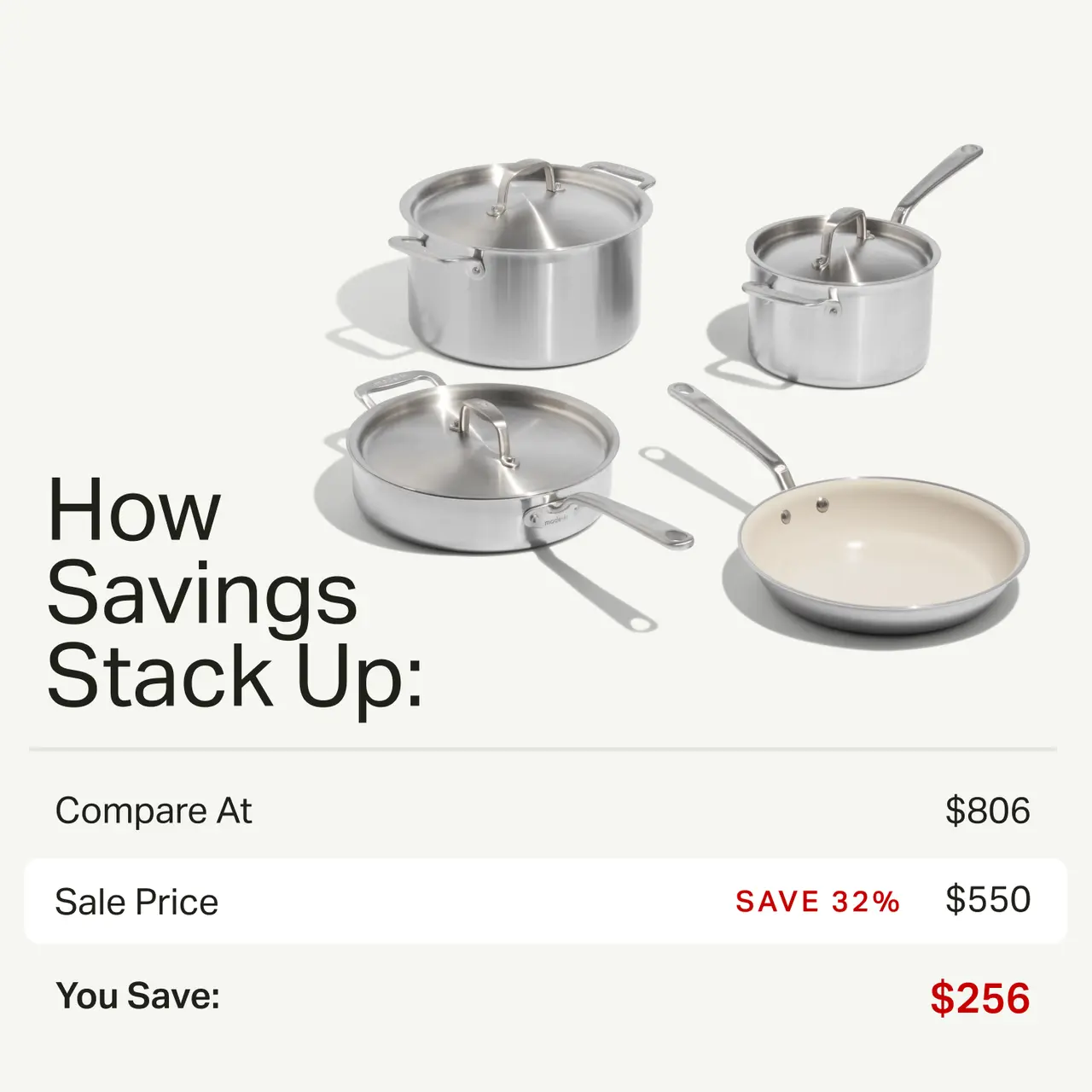 A highly versatile 7-piece set of our premium CeramiClad™ Cookware, now including new shapes engineered for high-performance clean cooking.
