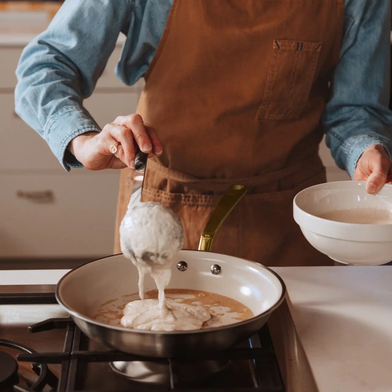 We coated our Award Winning 5-Ply Stainless Clad Frying Pan with a high-performance, Non Stick ceramic for the ultimate clean eating, even-heating, everyday pan.