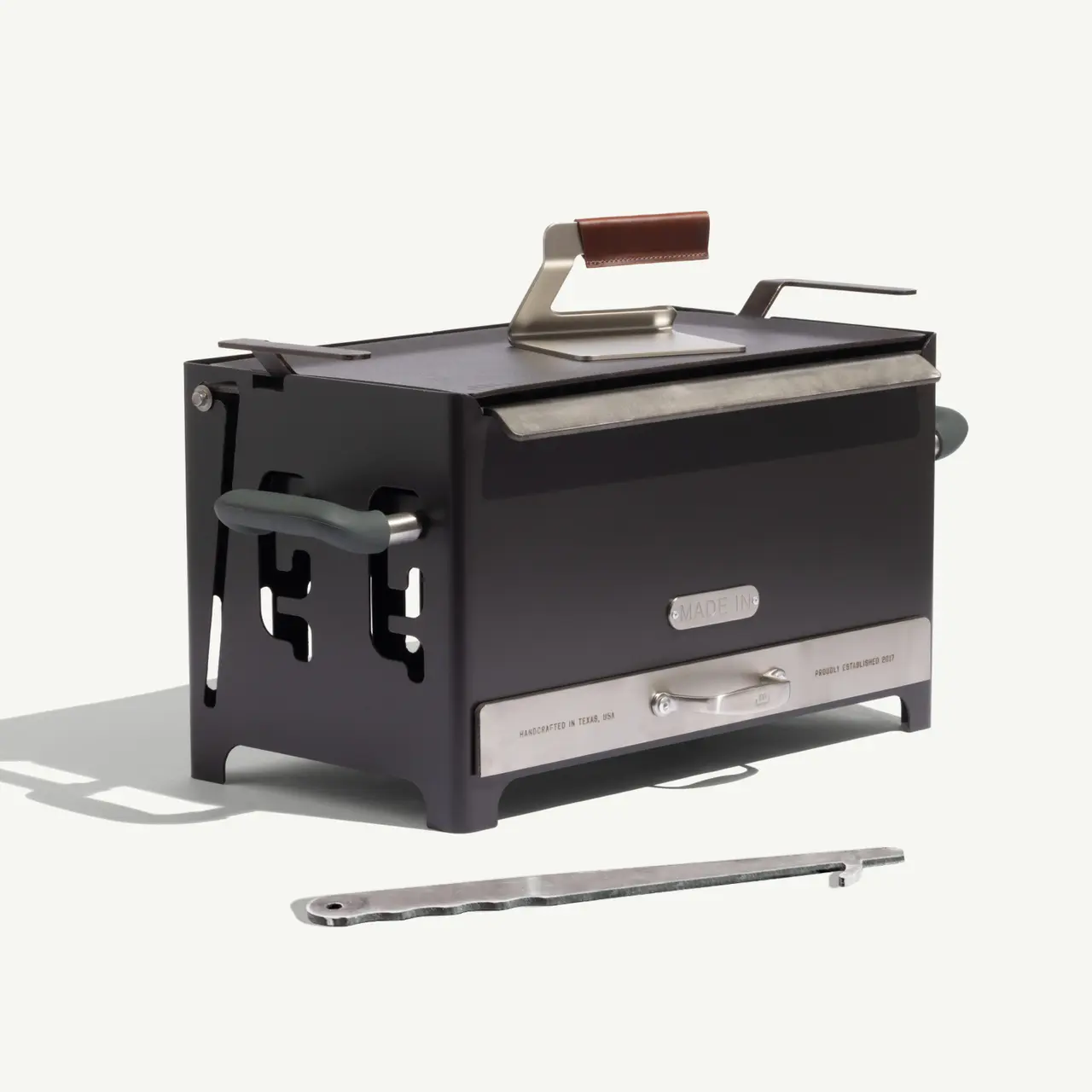 - Carbon Steel Grill Body with Retractable 304 Stainless Steel Grill Grate and Removable Ash Tray