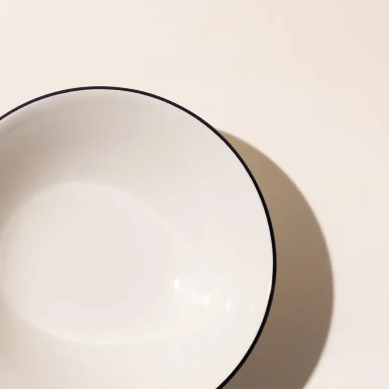 We’re the first to bring this legacy Plateware to home cooks. Most Plateware is mechanically top glazed, leaving an unfinished “foot” that causes scratching when stacked. We suspend each piece on pins and fully glaze top and bottom for 360° scratch- and chip-resistance. The glazing also makes it oven safe to 580F, so delicate sauces won’t break due to the temperature shock of a cold plate.