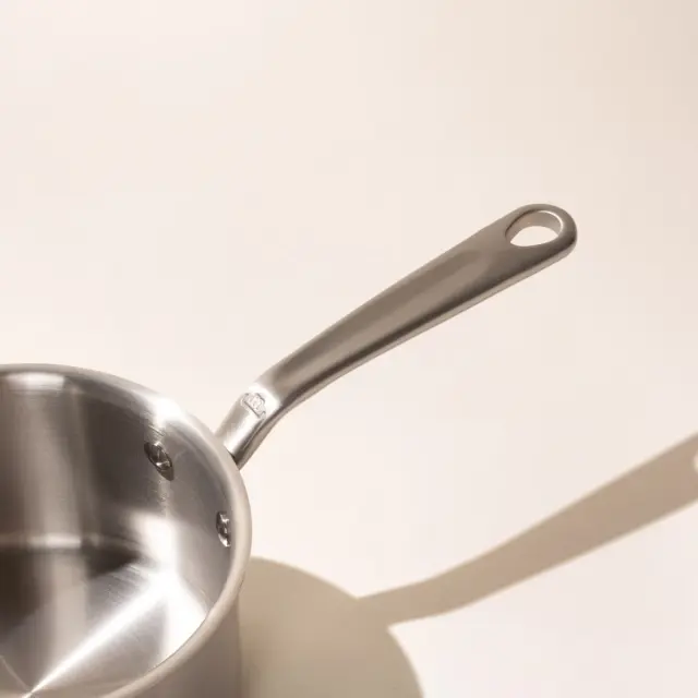 The Saucepan promises fluffy steamed rice, jammy boiled eggs, and sauces that refuse to break. The 5-ply construction also cleans up in seconds, because it prevents the hot spots that lead to stuck-on messes. A rolled rim allows you to pour sauces without spilling, and our hollow Stay Cool Handle™ keeps your hands safe.