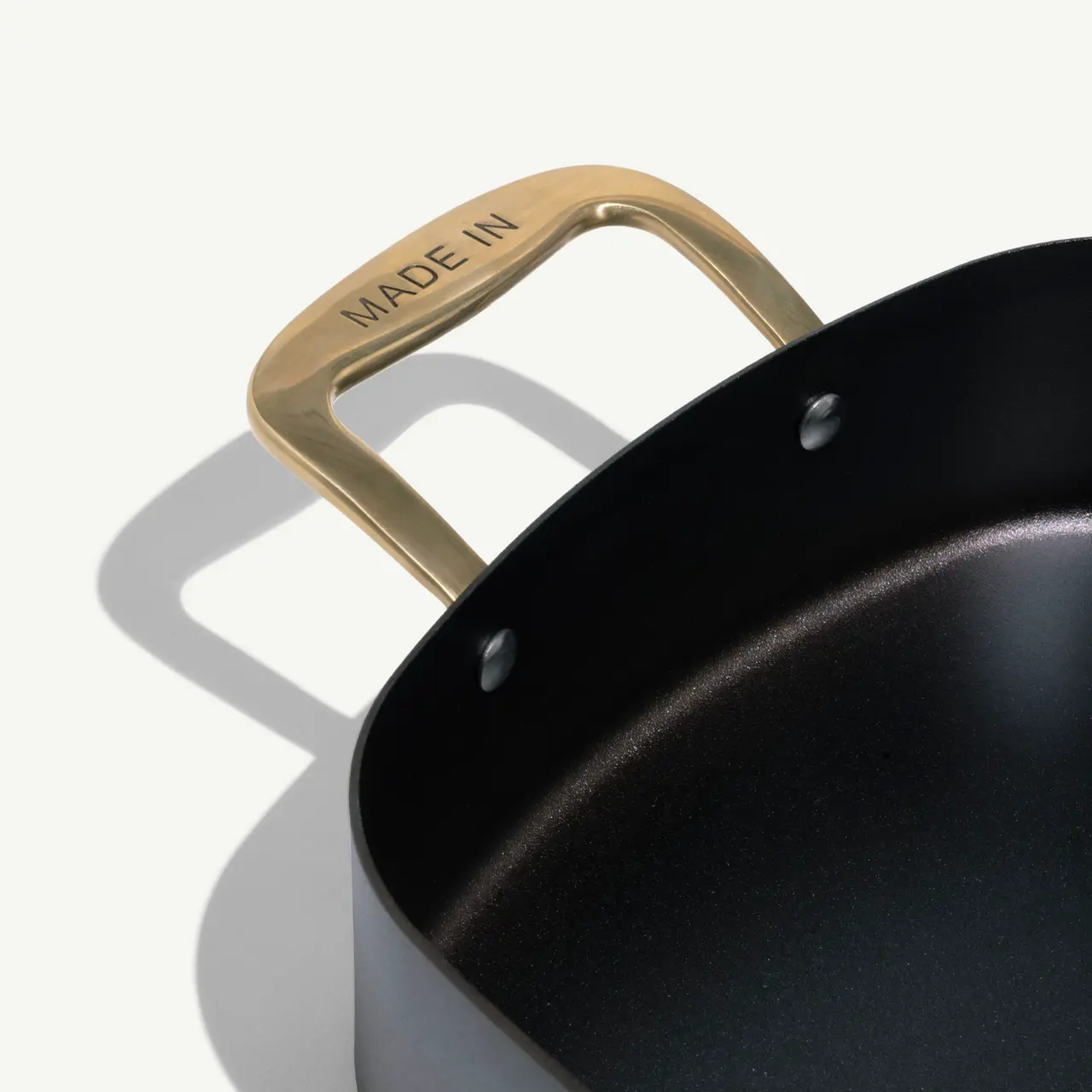 Beatrice T. Verified buyer This is an amazing pan. Great quality, great weight and beautiful brass handle. It’s been the only pan I’ve been using lately. Love it!